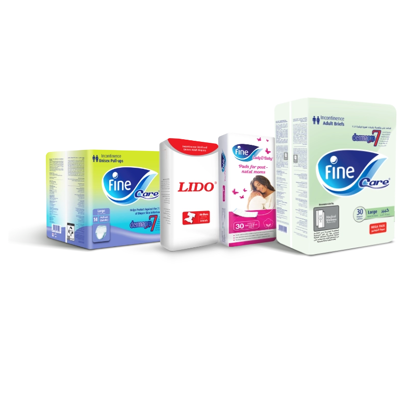 Our entire range of adult incontinence products features Fine’s advanced DermaPro™ technology, which helps prevent skin irritation and rashes—something that’s especially important for wearers with limited mobility. Our adult care products are pH-balanced, lotioned, and carefully sterilized, and feature odor-control agents—all of which are designed to meet the delicate needs of our consumers.